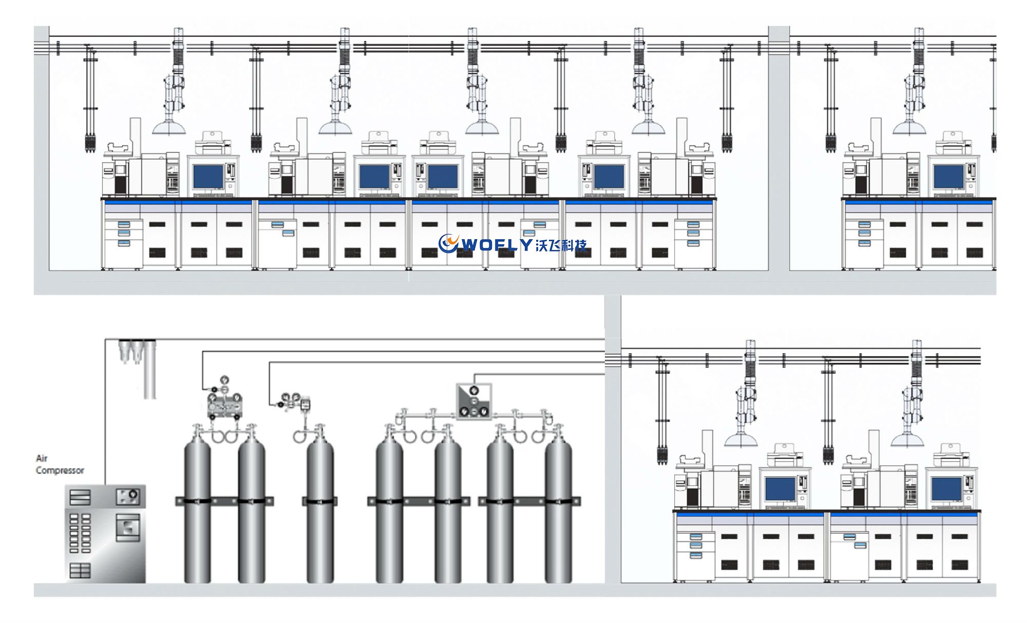 無氣瓶在實(shí)驗(yàn)室內(nèi),節(jié)省空間,消除危險(xiǎn)源。