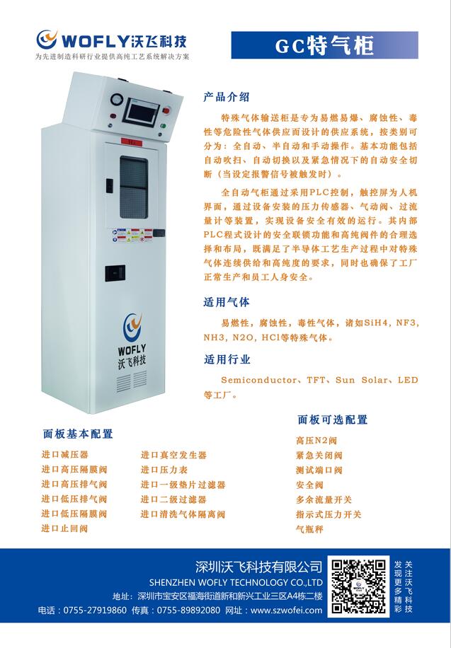 深圳沃飛科技有限公司自主研發(fā)生產(chǎn)的特氣柜可以根據(jù)客戶的氣體使用需求來進(jìn)行客需定制,詳情請(qǐng)致電:0755-27919860