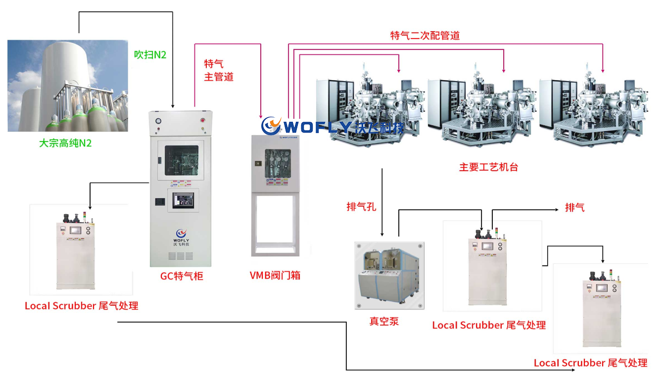 “氣”晚來遲,大“勢”正興起。作為專業(yè)從事氣體應(yīng)用系統(tǒng)工程的中堅力量,沃飛科技打造了安全可靠的電子特氣管道系統(tǒng),將特種氣體從氣源端、根據(jù)工藝設(shè)備的工藝需求、通過對流量和壓力等參數(shù)的控制,通過管道、無二次污染、穩(wěn)定輸送到工藝設(shè)備,確保SiH4、NF3、C2易燃易爆的氣體、有毒的氣體、有腐蝕性的氣體、純度特別高超過9.99%的一些具有高危險性的特氣儲存、輸送與分配